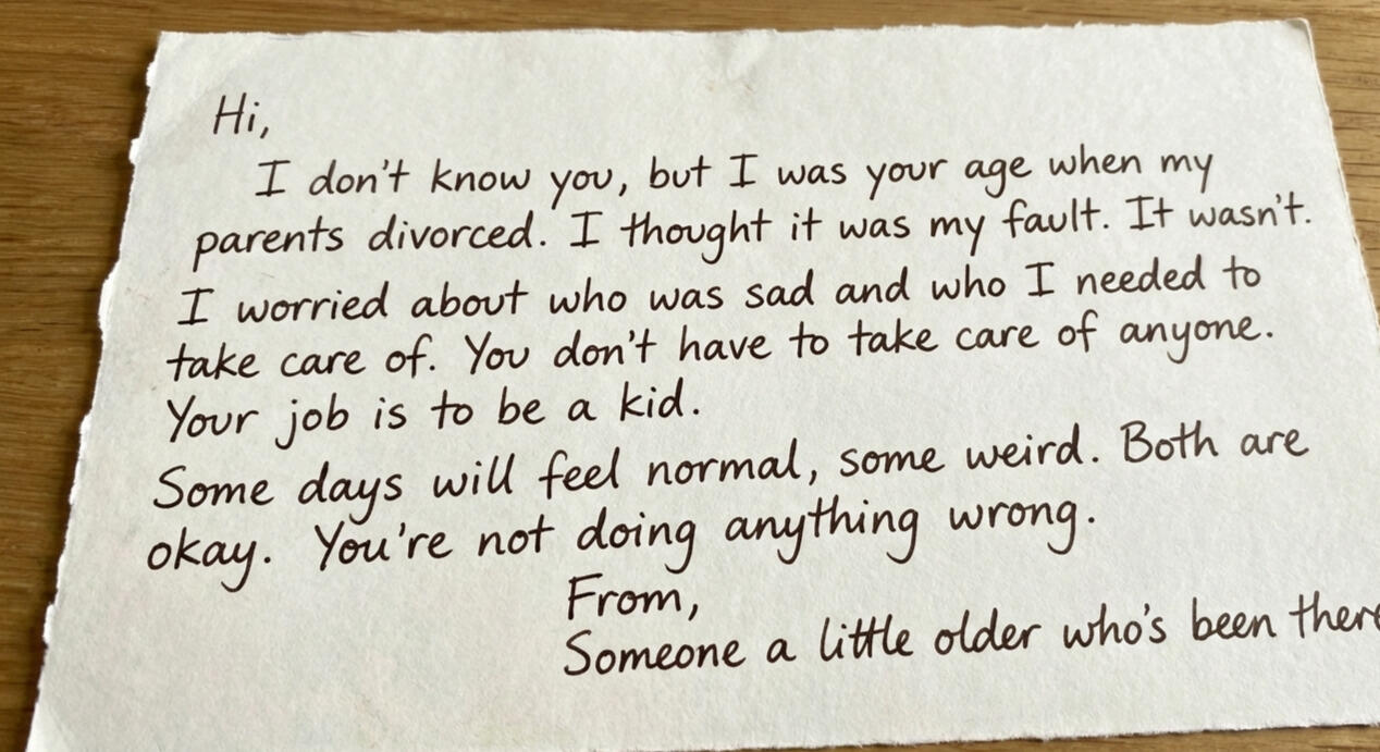 Real words from kids who’ve already lived through divorce — printed, folded, and mailed so they can be read again when needed.