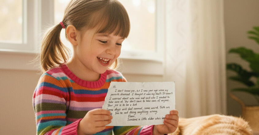 Tell us your child’s age and birth order so we can send a letter that feels relatable — not generic.2️⃣ A Letter Arrives (Offline, On Purpose) → Your child receives a real letter from an older kid who’s been through divorce — no apps, no screens, no pressure to respond.3️⃣ Go at Their Pace → Read it together, read it later, or tuck it away. There’s no right way — just space to process slowly.*Some kits also include stickers and conversation starters to make connection easier — without forcing “the talk.”